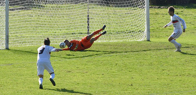Rosi si incarica del tiro di rigore e realizza il meritato pareggio. Il primo tempo termina così in parità sul 2 a 2.