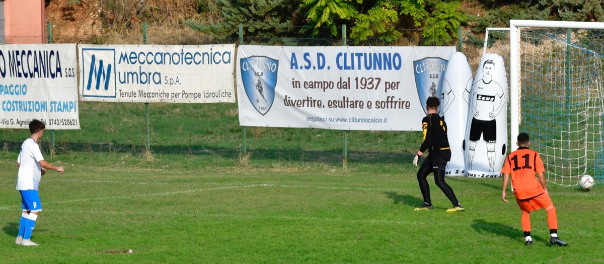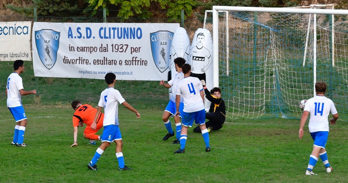 La Clitunno chiude il primo tempo in svantaggio, con la sfortuna dei legni colpiti e il rammarico di qualche occasione fallita.