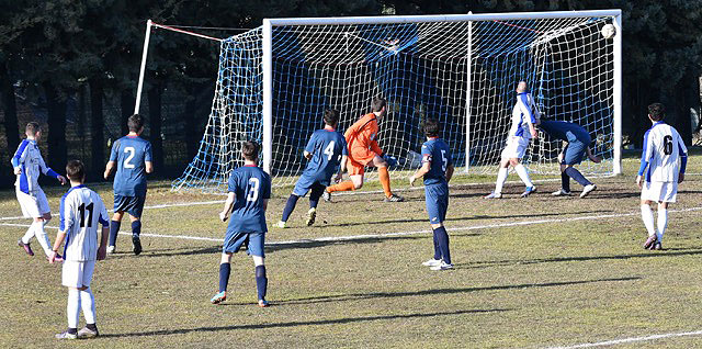 Passano solo tre minuti e Capoccia ci riprova con un colpo di testa su calcio di punizione, Romagnoli è bravo a bloccare la palla.