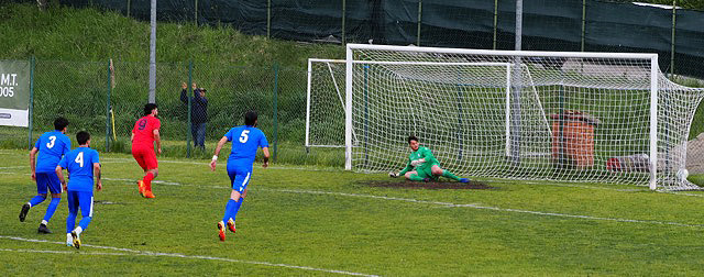 Allo scadere della prima frazione di gioco Gjinaj raddoppia trasformando una punizione dalla distanza, infila Bartolucci sul palo coperto dalla barriera con una precisa parabola a rientrare mettendo la ciliegina sulla torta della sua ottima prestazione.