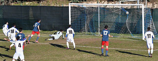 Al 2° della ripresa Rosi, spostato da difensore centrale ad esterno destro per l’uscita di Baronci infortunato, giunto sul fondo della fascia destra batte un insidioso traversone, Ceccarelli intercetta con difficoltà la palla ma la fa sua anticipando De Rosa.