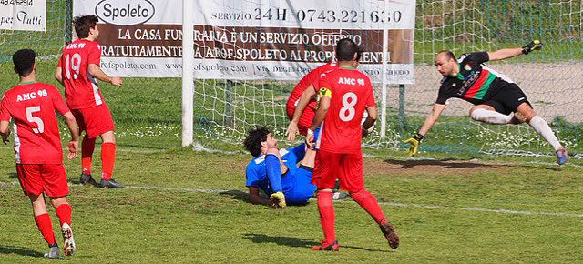 Con una buona prestazione complessiva la Clitunno torna alla vittoria interna su una AMC 98 molto nervosa, mai capace di impensierire la retroguardia avversaria e di effettuare un tiro in porta che impegni Roani. Gli ospiti servono su un piatto di argento il vantaggio ai padroni di casa con un clamoroso autogol dopo solo pochi secondi dall’avvio dell’incontro. La Clitunno non si accontenta e raddoppia al 29’ con Poli che ribadisce in rete la palla respinta dal palo su colpo di testa di Gjinaj. Numerose le occasioni create dai padroni di casa nel corso della partita e alla fine dell’incontro, in pieno recupero, vanno ancora a segno su calcio di rigore con Gjinaj concesso per atterramento di Sabatini. Questa vittoria consente ai biancazzurri di consolidare la terza posizione in classifica e rimanere in lizza per gli eventuali play-off. Per gli ospiti una sconfitta che li lascia invischiati nella zona play-out.